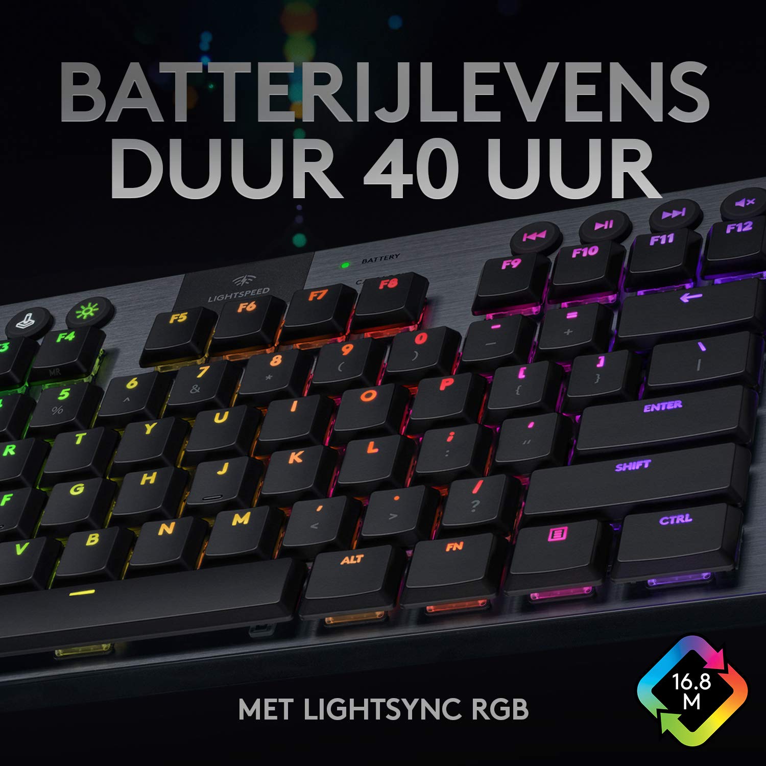 • LIGHTSYNC RGB – De RGB-verlichting van het toetsenbord is perfect afgestemd op alle soorten contentpersonaliseer elke toets of maak aangepaste animaties met zo'n 16,8 miljoen kleuren met de Logitech G HUB-software